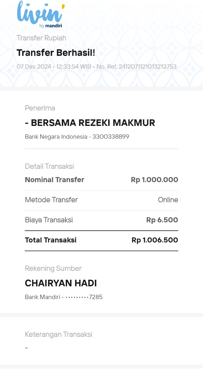 0008 CHAIRYAN HADI 089654850513 Sudah Tervalidasi Validasi Detail
